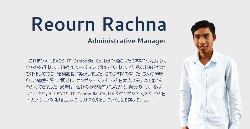 私たちA-LEADS(エイリーズ)IT Cambodia Co.,Ltd.はカンボジアで日本のクライアント向けにITアウトソーシングを行っています。現在60名を越えるメンバーが働いており、そのほとんどがカンボジア人です。